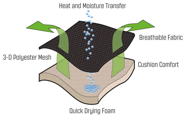 Der Acadia besitzt eine schnell trocknende Polsterung sowie ein Textiline-Netzmaterial in einem ansprechenden Schwarzton. Der Stuhl ist unter dem Bezug mit einem wasserabweisenden Material versehen, damit sich die Schaumstoffpolster nicht mit Wasser vollsaugen können, falls der Stuhl einmal im Regen vergessen werden sollte. Die Kopfstütze lässt sich einstellen und abnehmen.