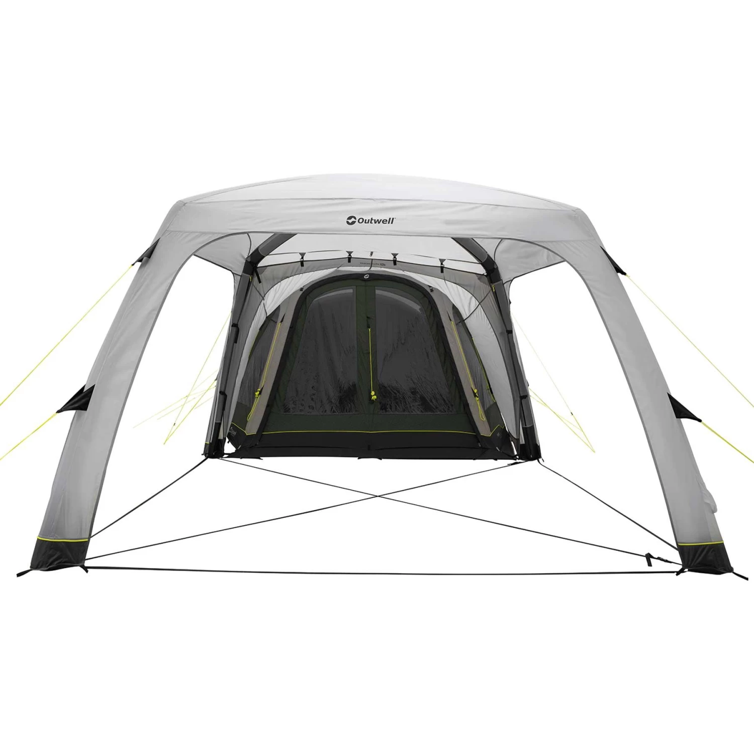 Die Outwell Air Shelter Zeltverbindung bietet einen überdachten Aufenthaltsbereich für gemeinsame Mahlzeiten und Geselligkeit, da es die Outwell Zelte miteinander verbindet. Die universelle Verbindung kann eine Lounge mit einem Zelt verbinden, um ein erweitertes, geschütztes Leben im Freien zu ermöglichen und den Komfort zu erhöhen.