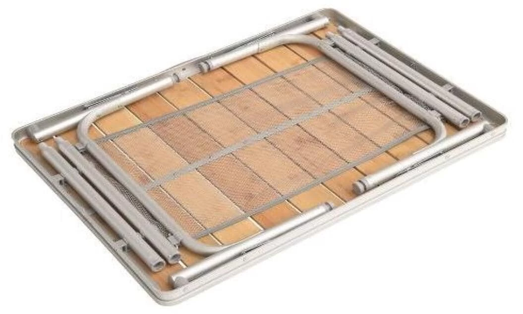 Der elegante Bambus-Tisch kombiniert natürliche Schönheit mit modernen Design. Der Tisch ist zum Transport kompakt zusammengelegt und leicht zu tragen, aber aufgebaut äußerst stabil. Für Picknick und Camping ideal geeignet.