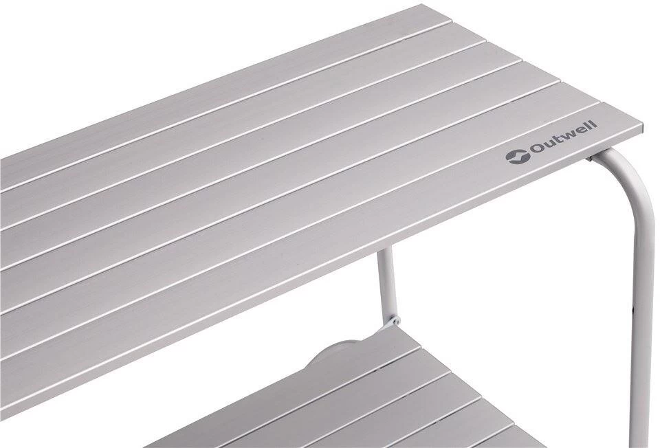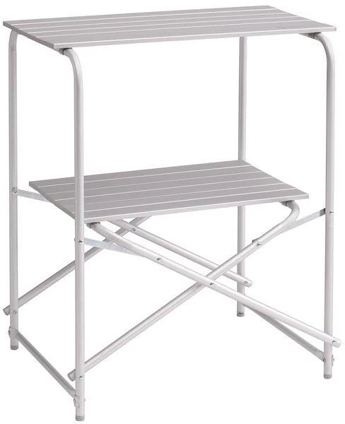 Einfach zu bedienende, leichte und robuste Kücheneinheit mit zwei Regalen, ideal für minimalistische Camper in kleineren Zelten, Vans und Wohnmobilen.