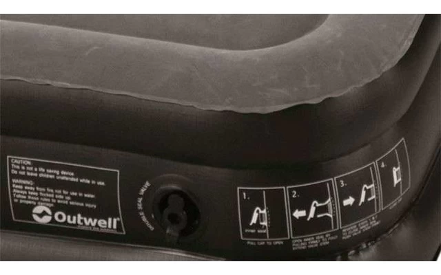 Die Konstruktion dieses hervorragenden Luftbetts überzeugt mit besonders festen Rändern und somit auch mit optimaler Stabilität. Die schwarze Farbe macht nicht nur in jedem Zelt von Outwell eine gute Figur sondern auch bei der gelegentlichen Nutzung als Gästebett. Das robuste PVC-Material ist mit weichem Velours beschichtet, das beispiellosen Komfort bietet. Zu den weiteren Ausstattungsmerkmalen zählen ein Ventil mit doppelter Abdichtung sowie eine Tragetasche.