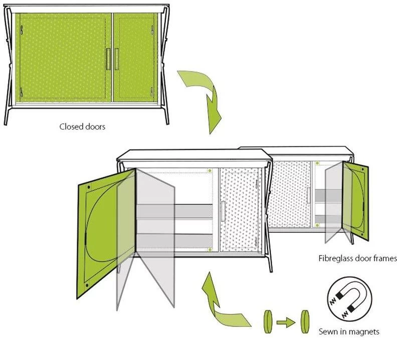 - Tür aus Netzstoff mit Reißverschluss, um ein Eindringen von Insekten in den Schrank zu verhindern