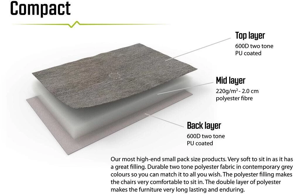 Der Outwell Tryfan Stuhl mit hoher Rückenlehne lässt sich nicht nur klein zusammenpacken, sondern bietet auch jede Menge Campingkomfort dank des geringen Gewichts. Sie können sich auf dem gemütlichen, weich gepolsterten Stoff entspannen, der an kühlen Abenden für Wohlbefinden sorgt. Außerdem werden Sie sich über das gepolsterte Nackenkissen freuen, wenn Sie sich nach den Abenteuern des Tages zurücklehnen und ausstrecken.